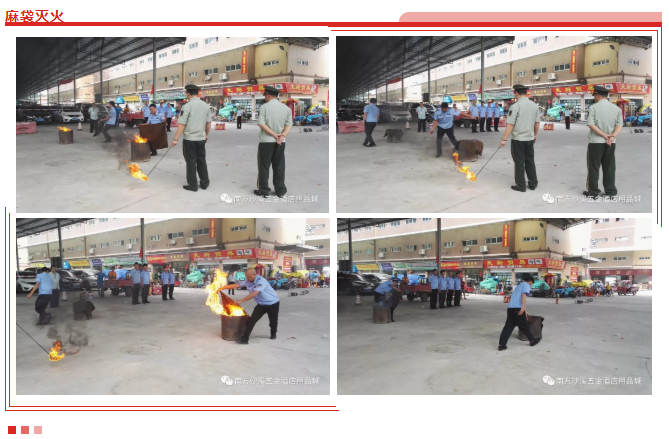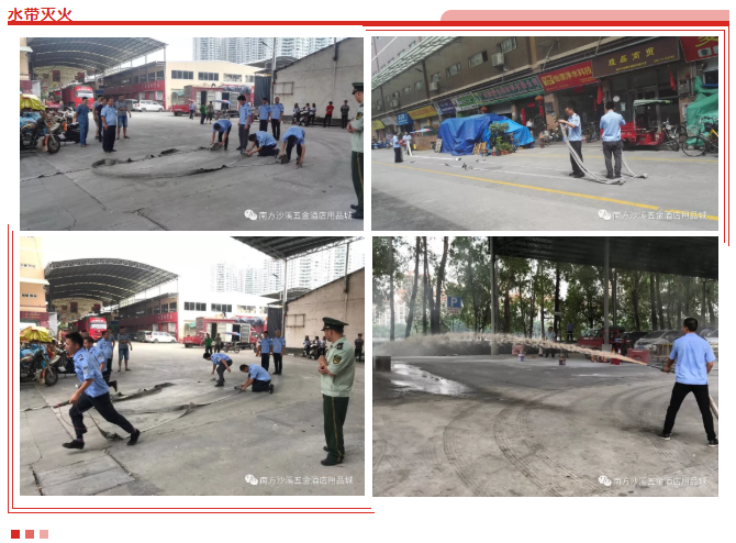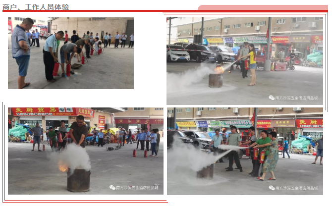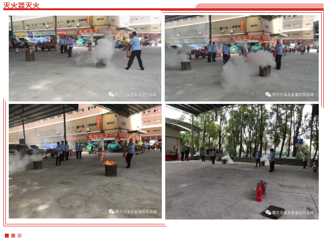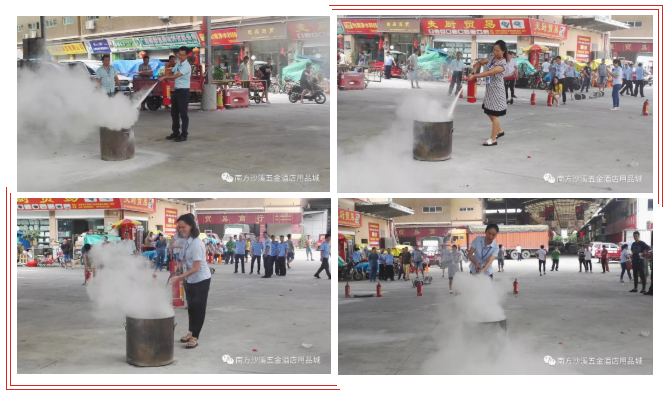 為提高商城內商戶和公司員工的消防意識,檢驗商城內的消防設施功能和治安消防隊撲滅初起火災的能力,增強商城內經商老板、務工員工在緊急情況下的應變能力、自我防護能力,使每個員工都懂消防知識,做到“四會”,遇到火災時報警、會撲救初起火災、會逃生、會自救。南方沙溪五金酒店用品城特于9月13日上午10:30組織消防演習,并取得圓滿成功。