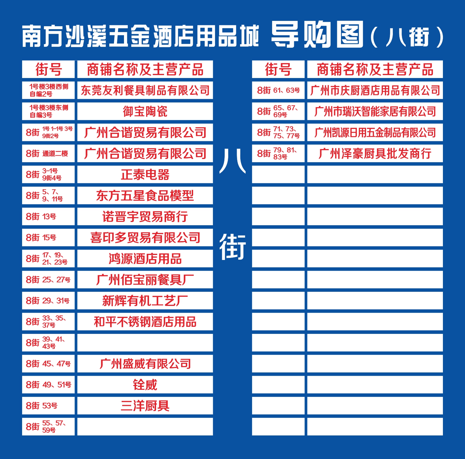 南方沙溪五金酒店用品城導購圖(八街)